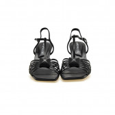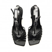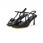Questo sandalo con tacco 70mm si distingue per la tomaia realizzata in morbida pelle nera, che conferisce alla calzatura un’estetica decisa e senza tempo. Il design è caratterizzato da un raffinato gioco di listini sottili che si intrecciano sul davanti, culminando in un nodo decorativo centrale. Il tacco a stiletto di media altezza e il cinturino a T regolabile alla caviglia garantiscono un'eleganza slanciata e una tenuta sicura, mentre la soletta interna in pelle assicura il massimo comfort, rendendolo perfetto per cerimonie o serate speciali.