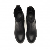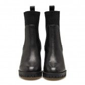 Questo stivaletto alla caviglia in pelle nera unisce comfort e stile. La tomaia combina il morbido camoscio con un inserto a coste in tessuto elasticizzato, che avvolge la caviglia come un calzino. La suola carrarmato e il tacco largo offrono stabilità e un tocco urbano.