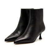 Questo raffinato stivaletto alla caviglia in pelle nera incarna un'eleganza intramontabile. La silhouette slanciata, la punta affusolata e il sottile tacco a rocchetto creano un look classico e sofisticato. Un accessorio versatile, perfetto sia per il giorno che per la sera, che aggiunge un tocco di classe a ogni outfit.