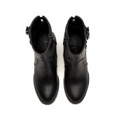 Stivaletto in pelle nera con un design che mixa eleganza e carattere. Le due fibbie dorate sulla caviglia aggiungono un tocco audace, mentre la suola a carrarmato e il tacco largo offrono stabilità e un'estetica robusta. Perfetto per un look autunnale chic e grintoso.